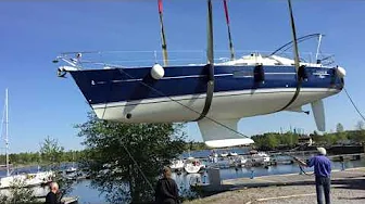 Ep 2. Here our new Beneteau 423 is being lifted into Umeå river in Obbola, 2018